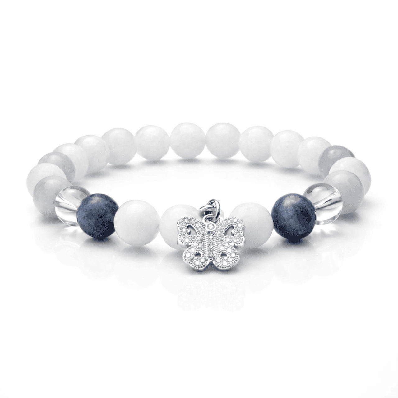 - Kalcedon: a kalcedon nyugtató hatású ásvány, amely segít a belső béke megtalálásában. Az ásvány világoskék színe és sima felülete hozzájárul a karkötő harmóniájához és eleganciájához.