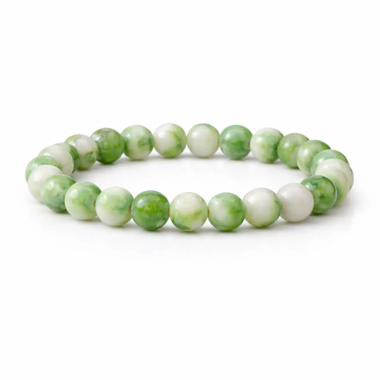 A zöld-fehér jade ásvány karkötő egy elegáns és jótékony hatású ékszer, amely segít fenntartani a belső harmóniát és a pozitív energiát. Ideális választás mindennapi használatra és különleges alkalmakra egyaránt.